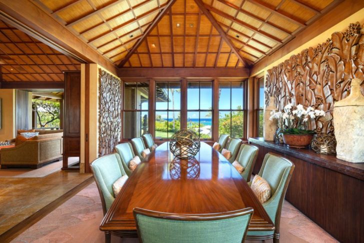 Upon first glance, the Honu Estate captivates with its exquisite use of exotic woods like mango, koa, mahogany, and teak, each piece telling a story of craftsmanship and attention to detail. The estate spans an impressive 14,500 square feet, offering a grandiose yet welcoming atmosphere that marries traditional Hawaiian design elements with modern aesthetics.
